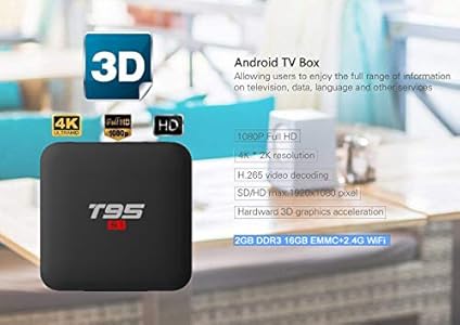 Key specs for Android 7.1.2 TV Box with mini wireless keyboard,EASYTONE T95 Android TV Boxes Quad-core 2GB RAM/16GB ROM Support 4K (60Hz) Full HD/ H.265/3D/ 2.4G Wifi Google Internet TV Box: